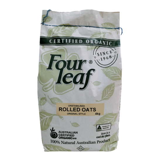 Four Leaf Organic Rolled Oats are premium 100% natural, unstabilised oats made from whole oat kernels, rich in dietary fibre, soluble fibre, Vitamin E, and nutrients that support heart health, cholesterol reduction, energy, and healthy ageing.