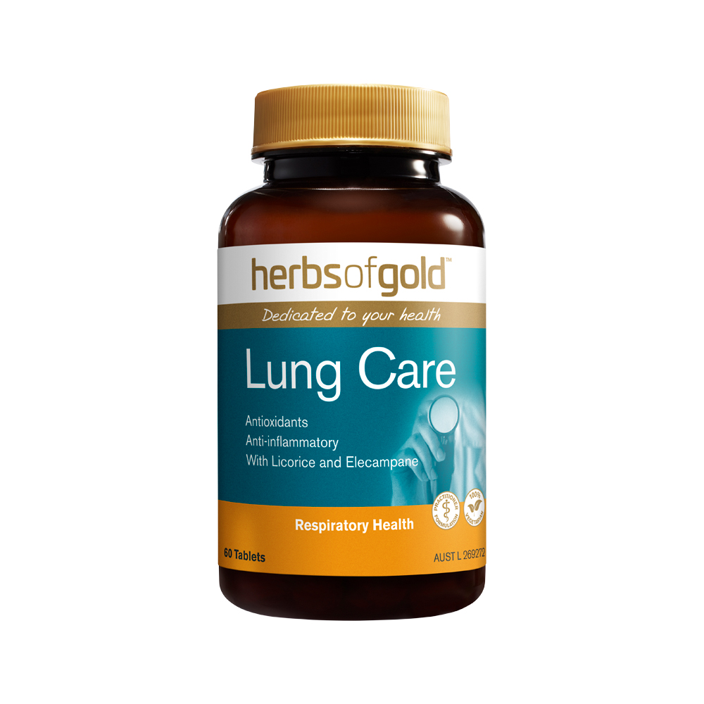 Herbs of Gold Lung Care assists in maintaining healthy lung function and relieve coughs and chest congestion, with Adhatoda, Licorice, Elecampane plus Vitamin C, Vitamin E and Selenium.