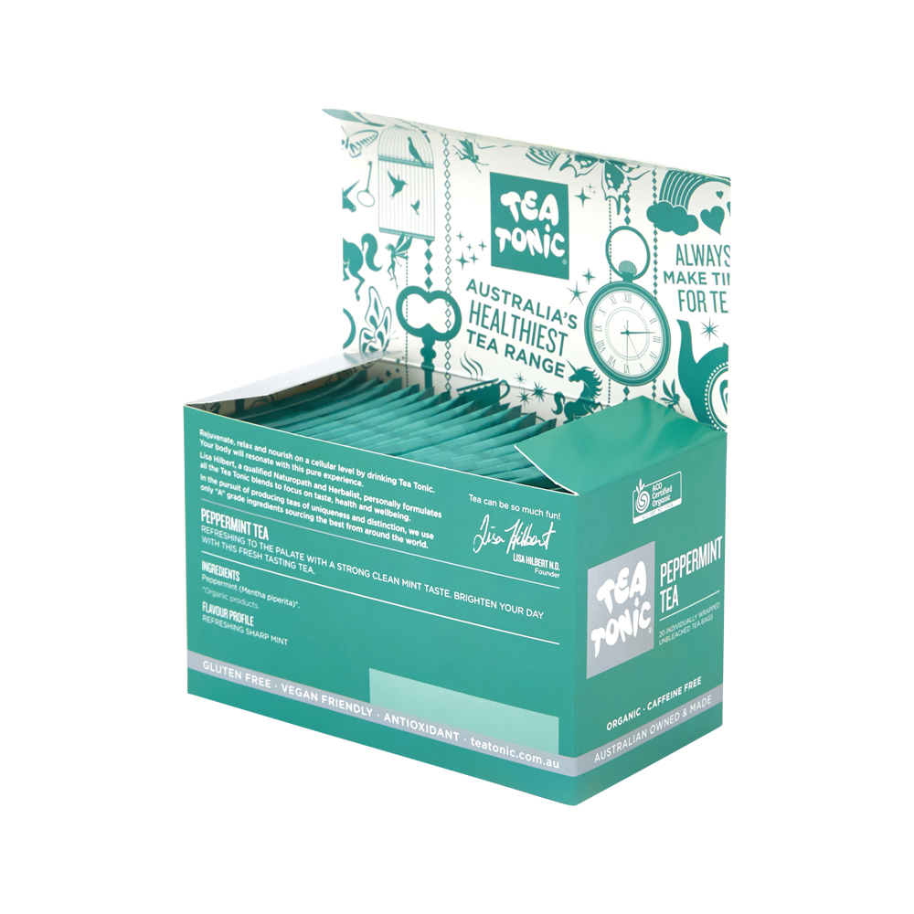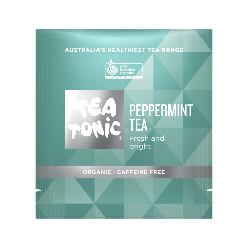 Organic Peppermint Tea by Tea Tonic – caffeine-free, vegan, gluten-free herbal tea with refreshing mint flavour to support digestion and everyday wellness.