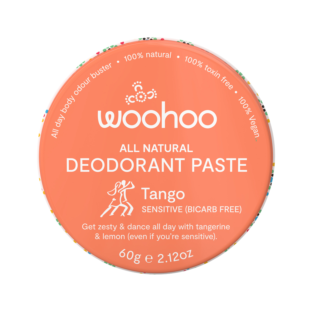 Say hello to Woohoo Tango, the natural deodorant that keeps you fresh while being extra kind to sensitive skin. Specially formulated without bicarb soda, Tango’s gentle, 100% natural ingredients provide reliable odour protection without irritation — perfect for those with delicate underarms or anyone seeking a softer touch.